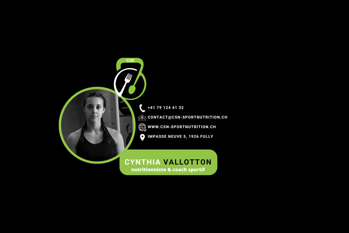 Pour contacter Cynthia, envoyez-lui un message au 079/124.41.32 , par mail contact@csn-sportnutrition.ch ou contactez la sur son instagram